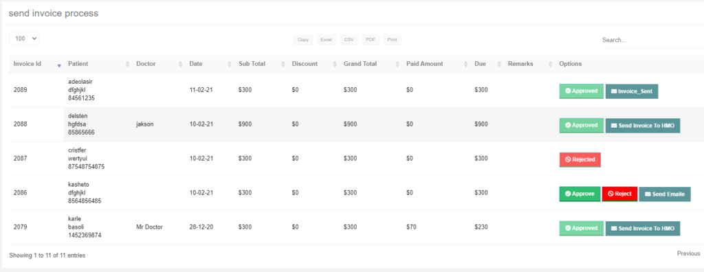 This modules allows the Hospital to make claims on the additional charges from the HMO other than the agreed monthly fees. This automates the pre-authorization/approval process for patients that requires additional covers and/or fees for complex surgery or medical conditions. The hospital can email the HMO for pre-authorization directly from the software . The status of the approvals can be marked as “Approved or Rejected” when the response is received from the HMO. In case this approval is given , after the patient procedure , the invoice can be emailed directly from the software to the HMO for payment and status tracking marked as “ paid or unpaid”.