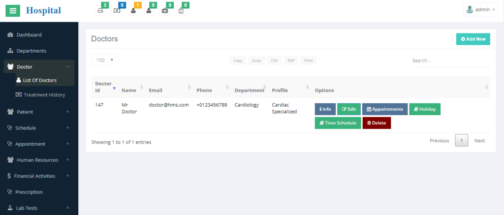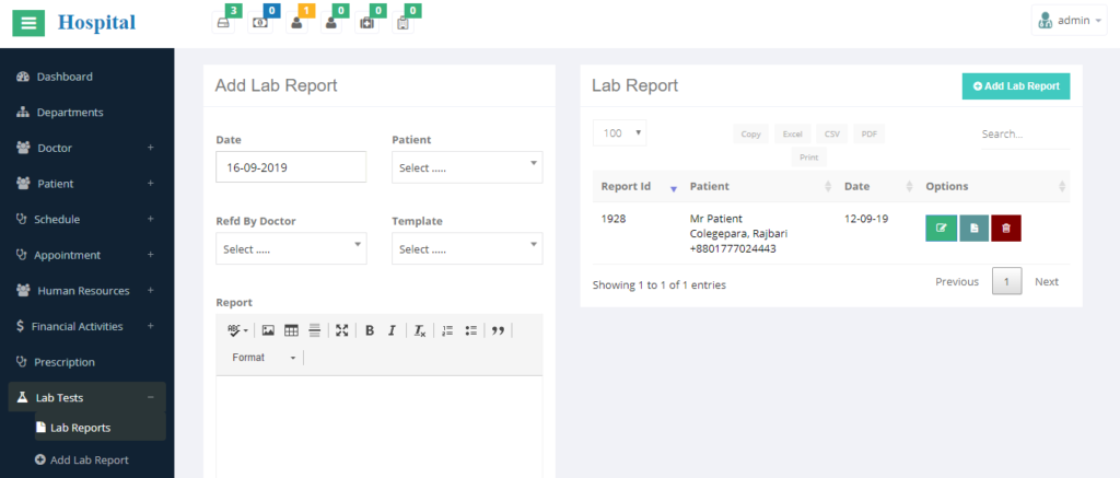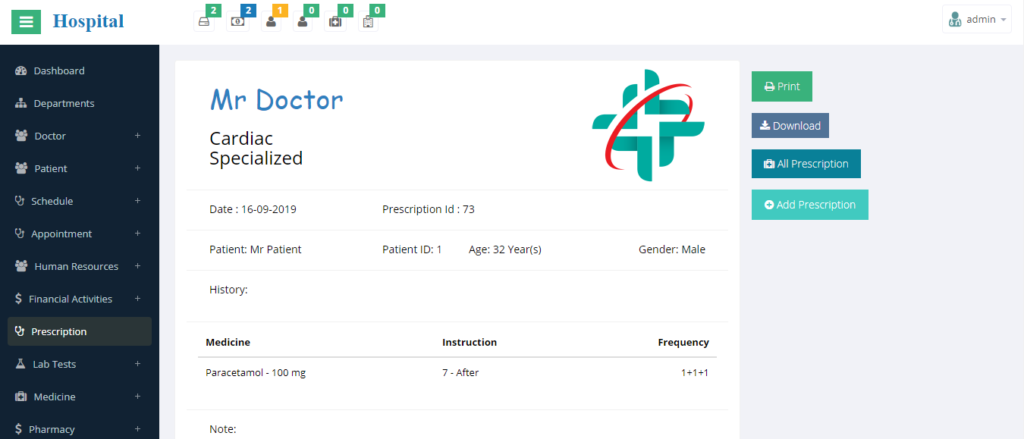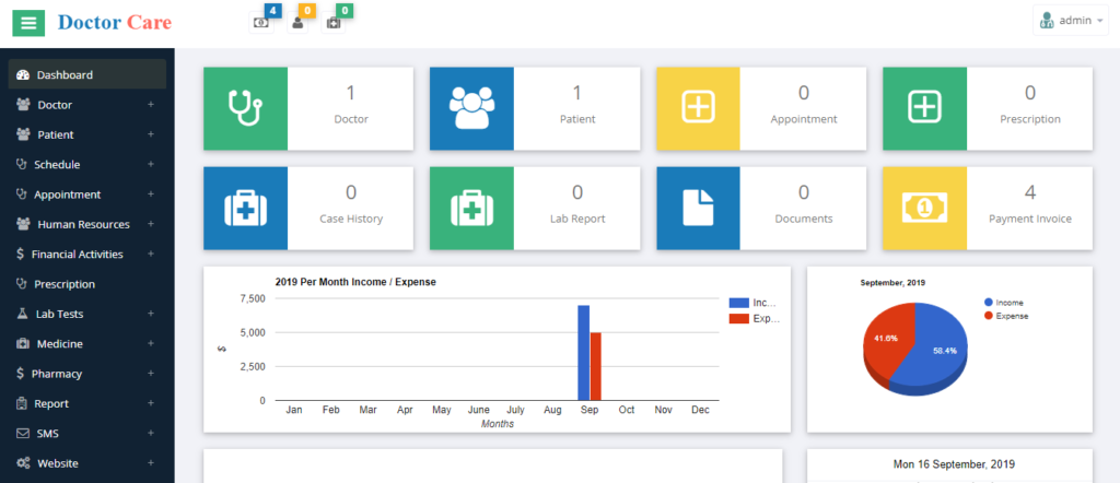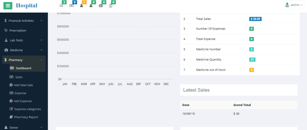 After user enter into an specific hospital a user friendly dashboard will help users to know about all the activities at a glance.