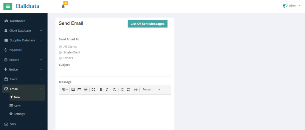 Admin can send bulk email to individual employee or patient of his/her institution or organization.