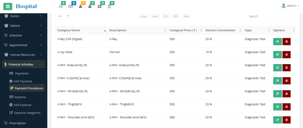 Financial activities module manage all the financial transaction and reports of the hospital. User can create payments, invoices & expenses.