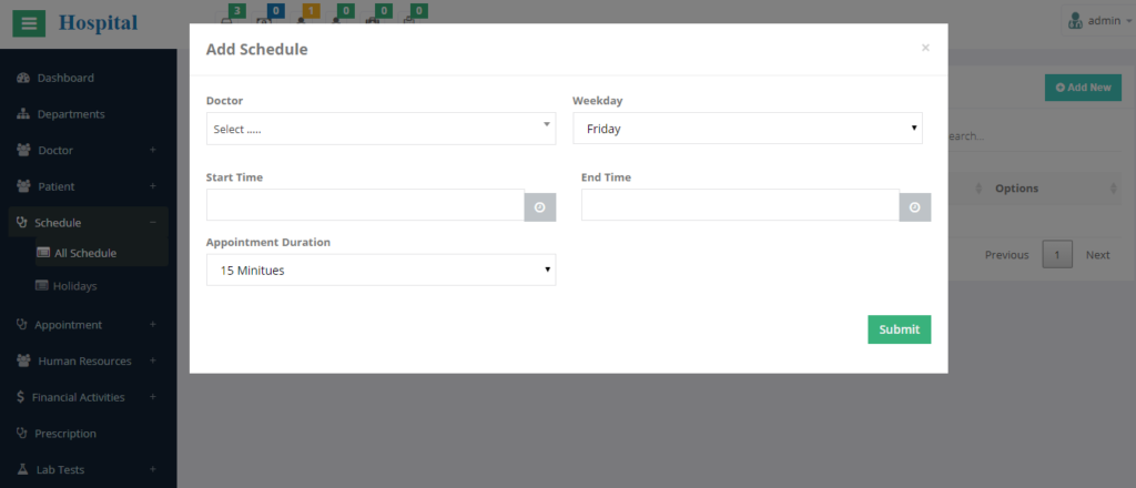 From here doctor can set their schedule according to weekdays and holidays according to year.